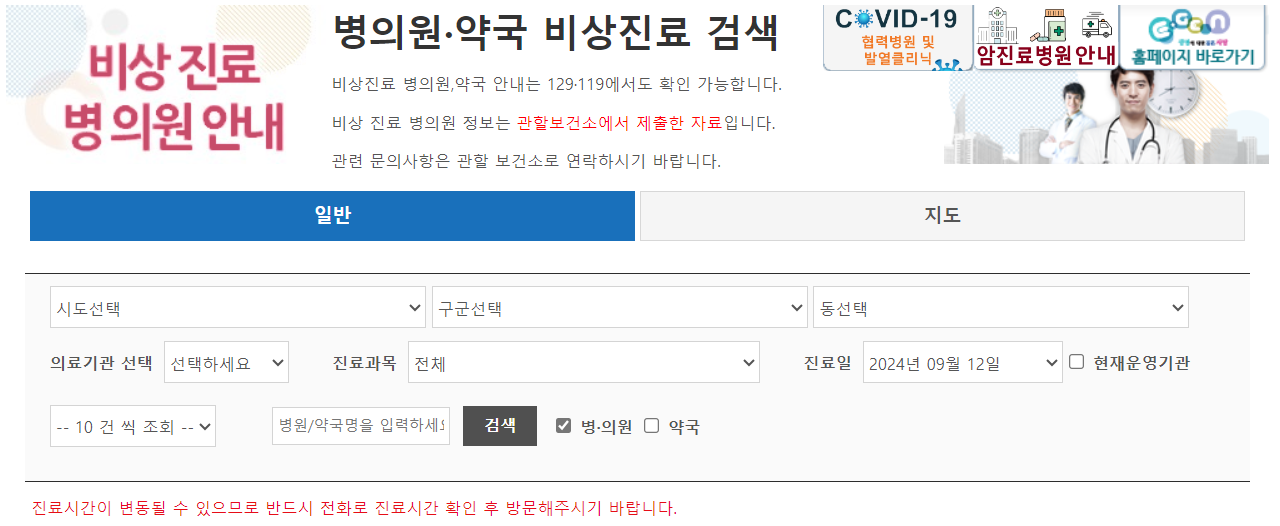 공휴일 진료병원 찾기 - 추석 병원 약국 조회